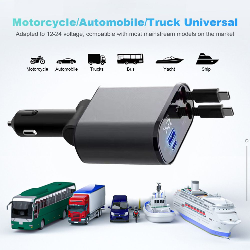 🔌 Cargador de Vehiculo 4 en 1 de Alta Velocidad con Cable Retráctil